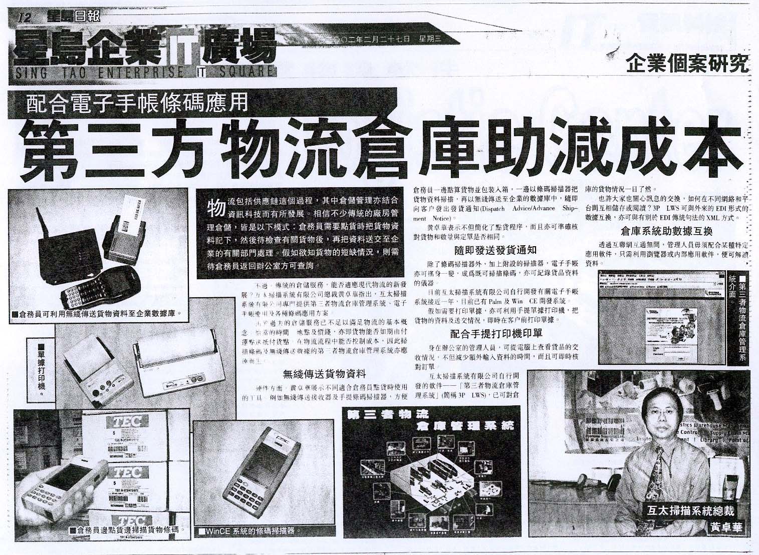 1996 ¦~§Ú们¦¨¥\开发¦Û¤v²Ä¤@®M²Ä¤T¤èª«¬y仓库 ºÞ²z¨t统¡A¤@ª½¥H来§Ú们¤£断§¹µ½"²Ä¤T¤èª«¬y仓库ºÞ²z¨t统"
